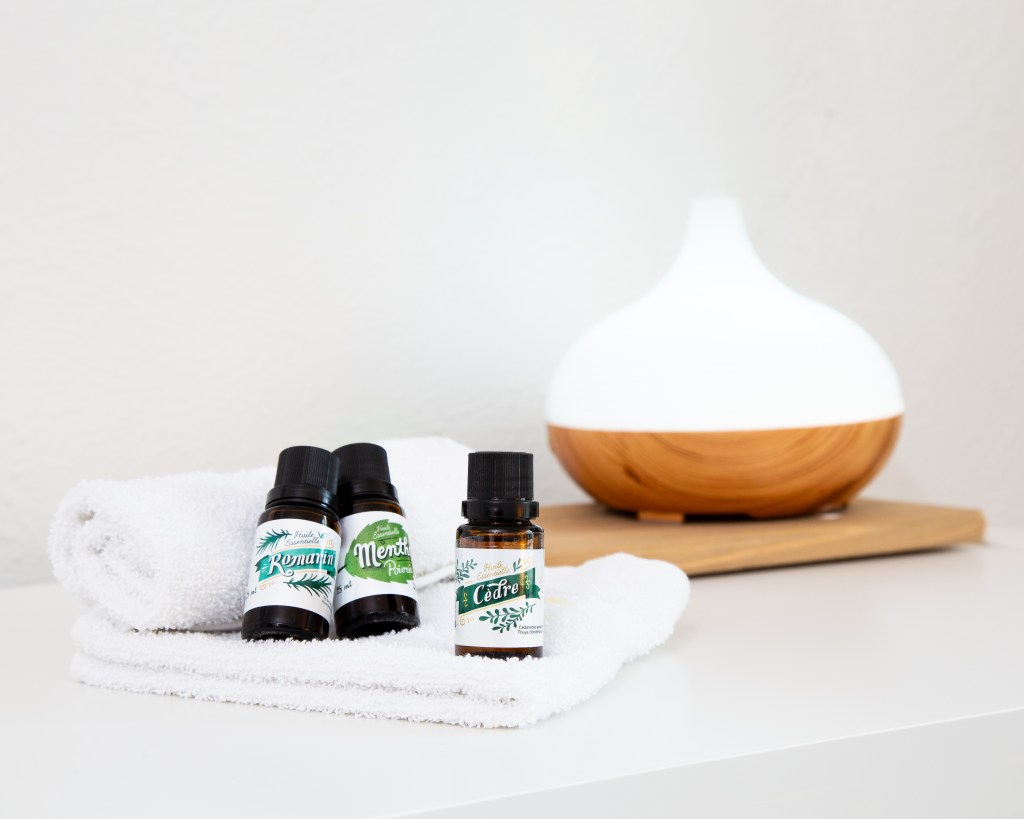 - Aromathérapie en diffusion d’huiles essentielles